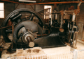 Rejuvenated "Ruby", the Ruston & Hornsby gas suction engine used by the late Alf Cocks to pump water for his sluicing operations at the Forest Creek Historic Gold Diggings site in Wesley Hill. ìSheî is now powered by an electric motor driving the massive 5 ton flywheel and two huge pistons. (small pic of the engine Ruby.jpg) |